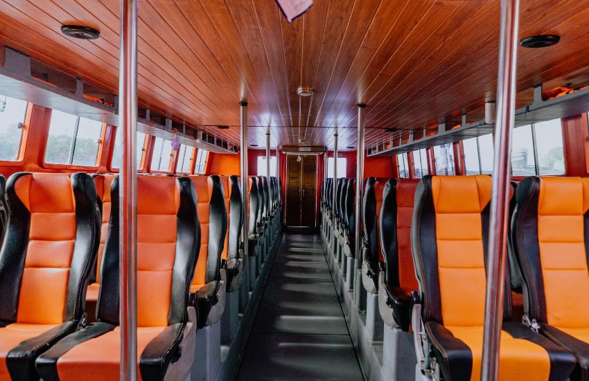 This boat features a spacious and well-appointed deck layout, offering ample seating and storage options. The seating arrangement is designed for comfort and convenience, allowing passengers to relax and socialize while enjoying the surrounding views. There are also storage compartments available for keeping personal belongings and equipment.